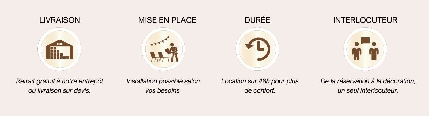 « J’ai loué des tables, chaises et couverts pour l’anniversaire de ma fille. Tout est arrivé parfaitement à temps et de très bonne qualité ! »