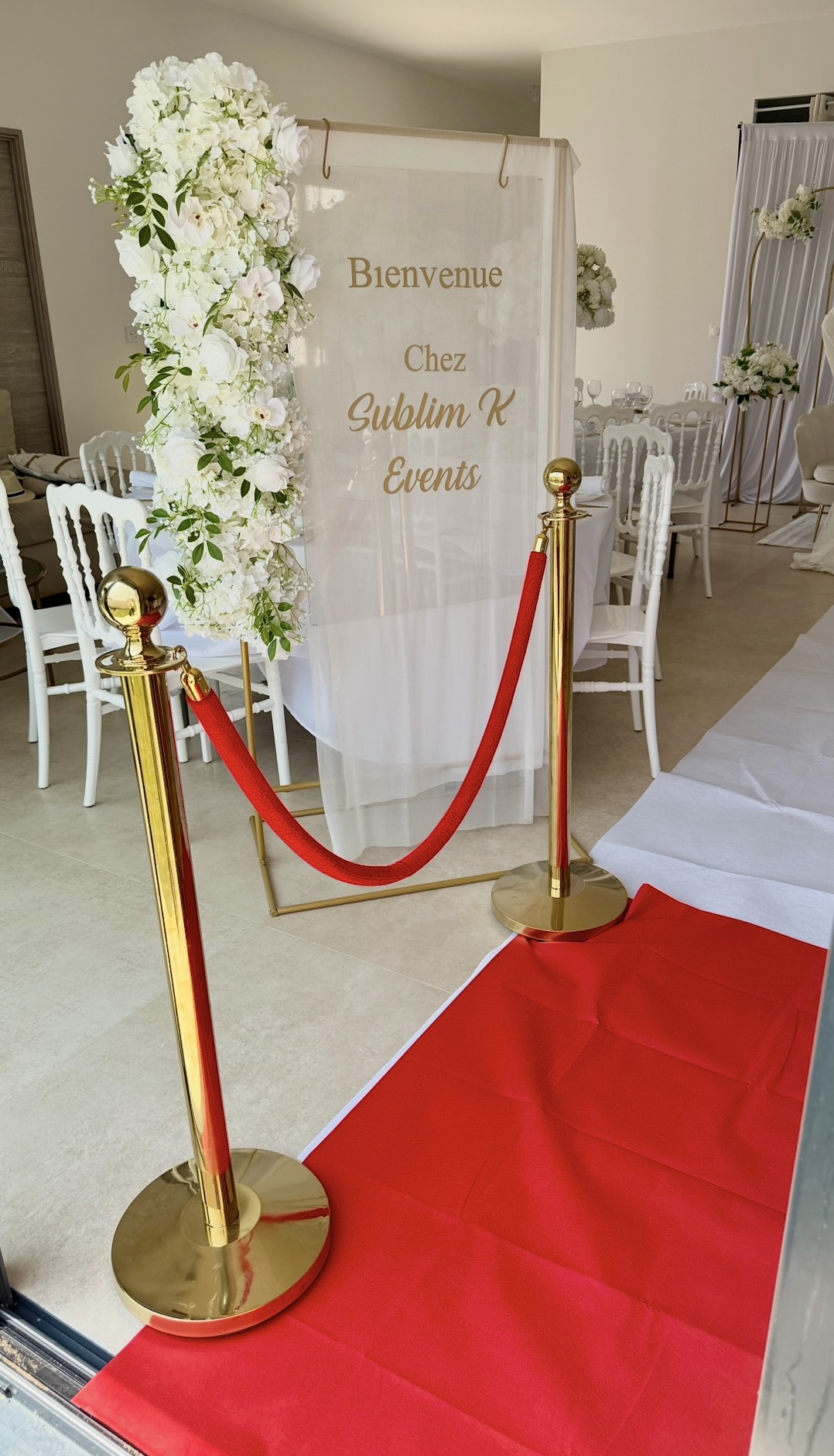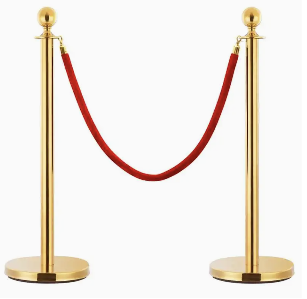 Lot de 2 : 4 poteaux dorée de 1m de hauteur et 2 cordons rouge en velours longueur 1m50